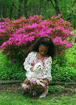 she's a Maltese and weighs 4.5 lbs, just like myself she's a bundle energy