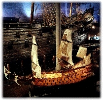 In the large shiphall stands the warship Vasa - the only remaining, intact 17th centtury ship in the world. The lower rig has been rebuilt, complete with masts, stays and shrouds. Just like the Vasa would have looked like when set for winter harbour. The wreck, salvaged in 1961, is now once again a complete ship.